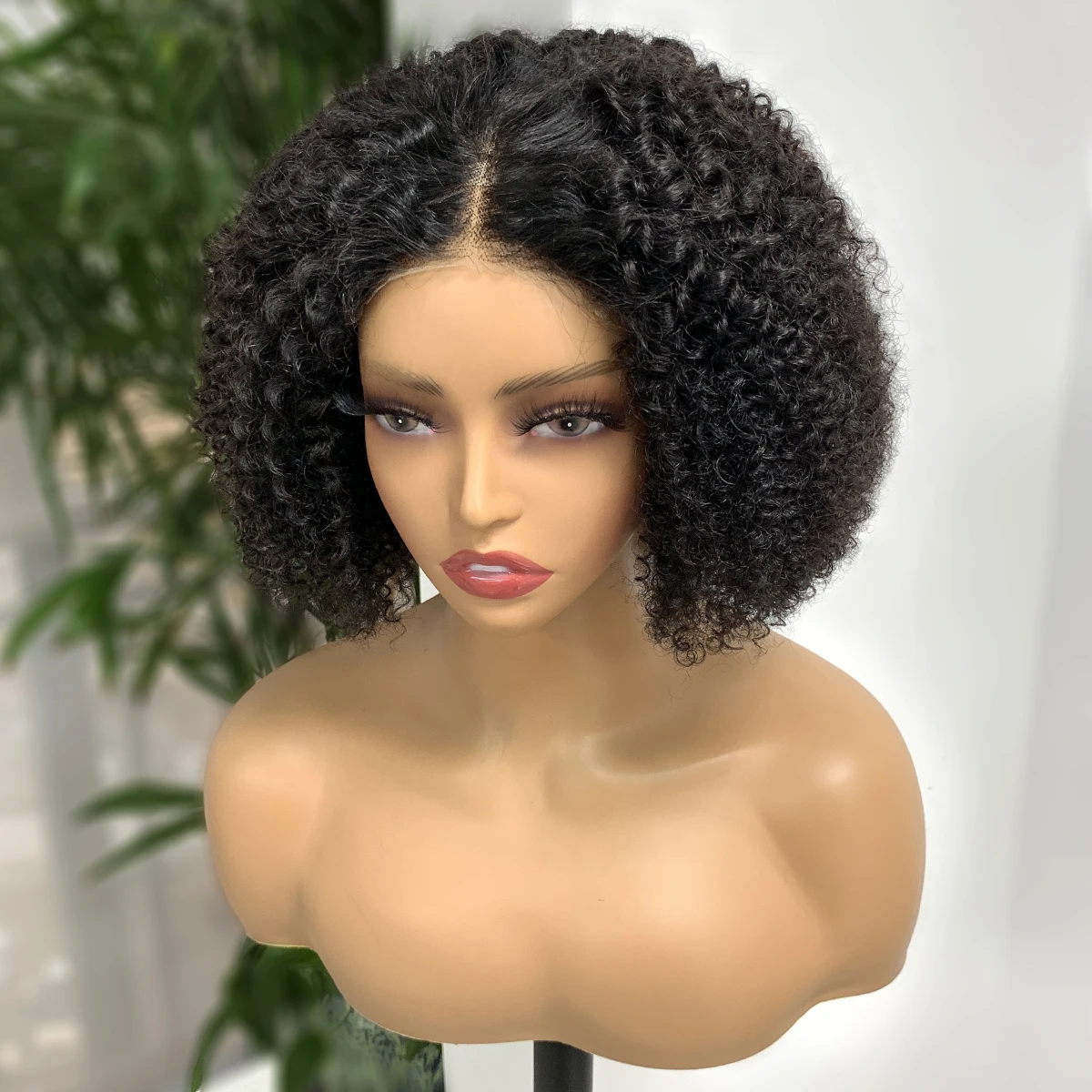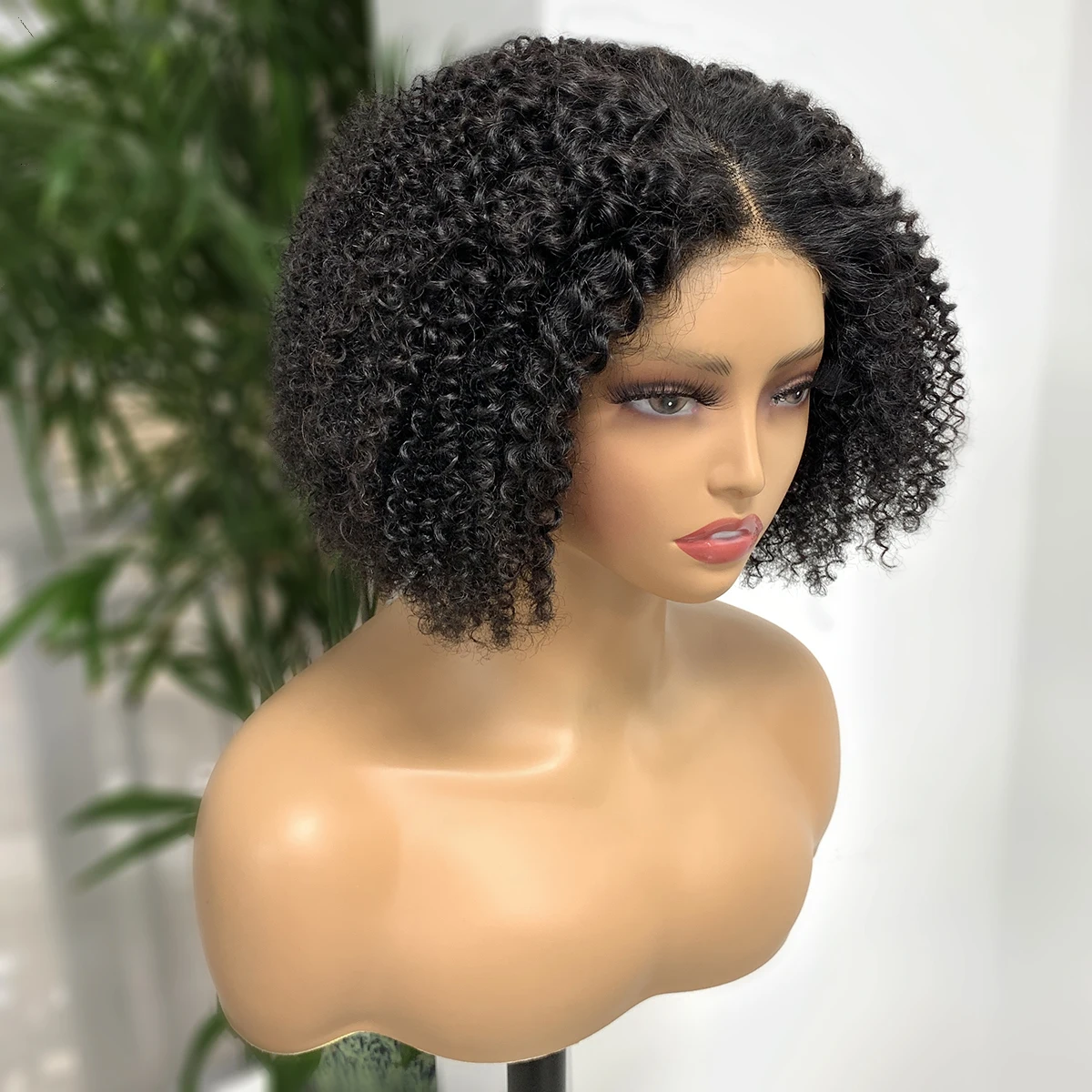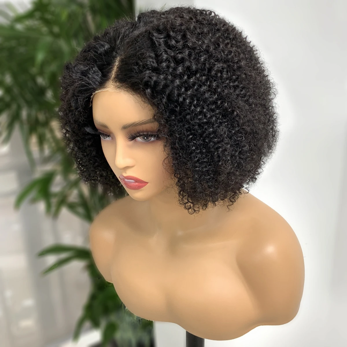 Peluca para mujer estilo bob de cabello humano con textura afro rizada en color natural. Encaje frontal 4×4, densidad 180% y acabado natural para un look cómodo, voluminoso y fácil de llevar.