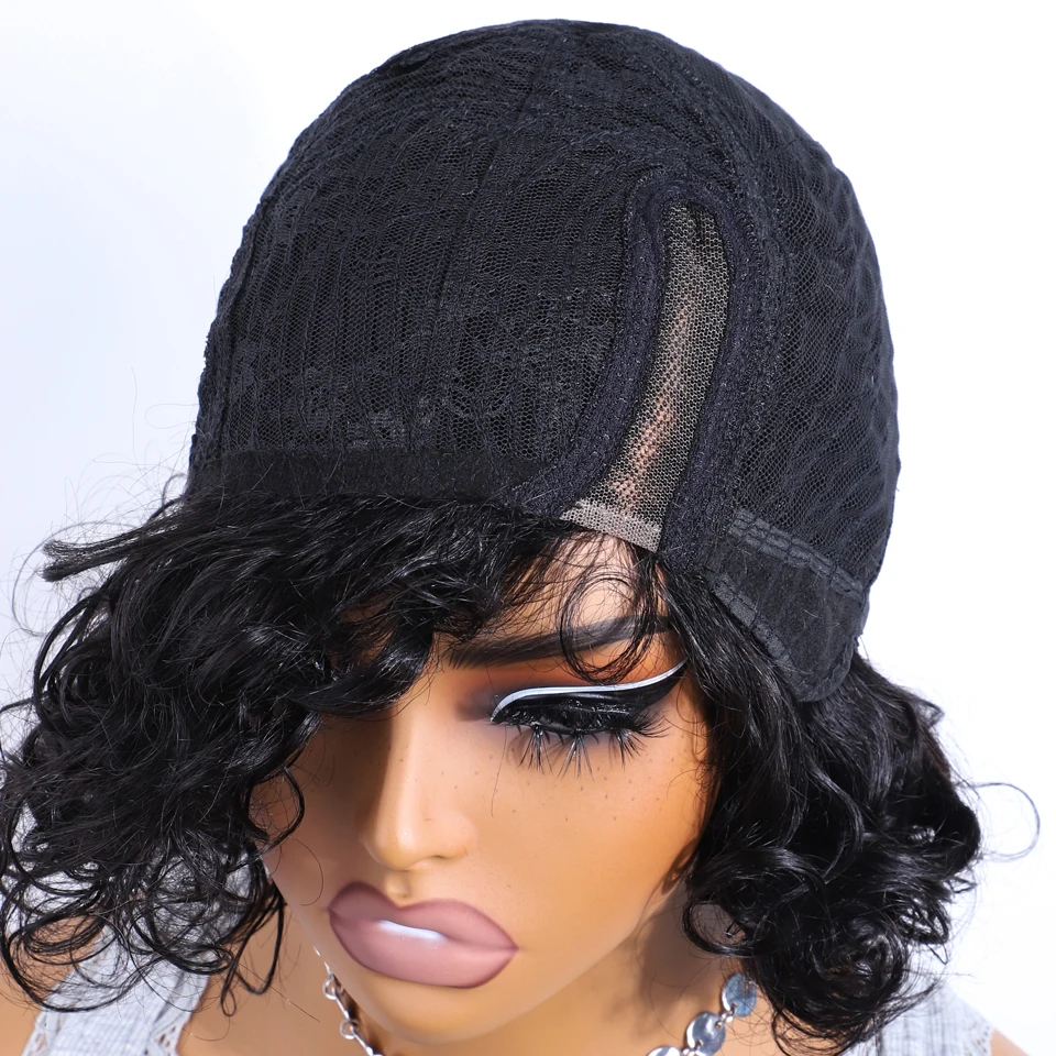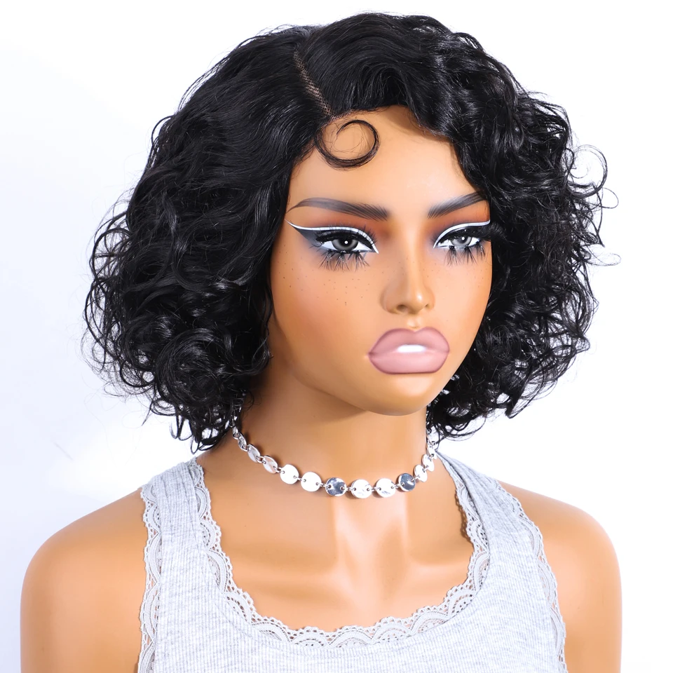 Peluca bob corta ondulada de cabello humano con encaje 5×1 para mujer