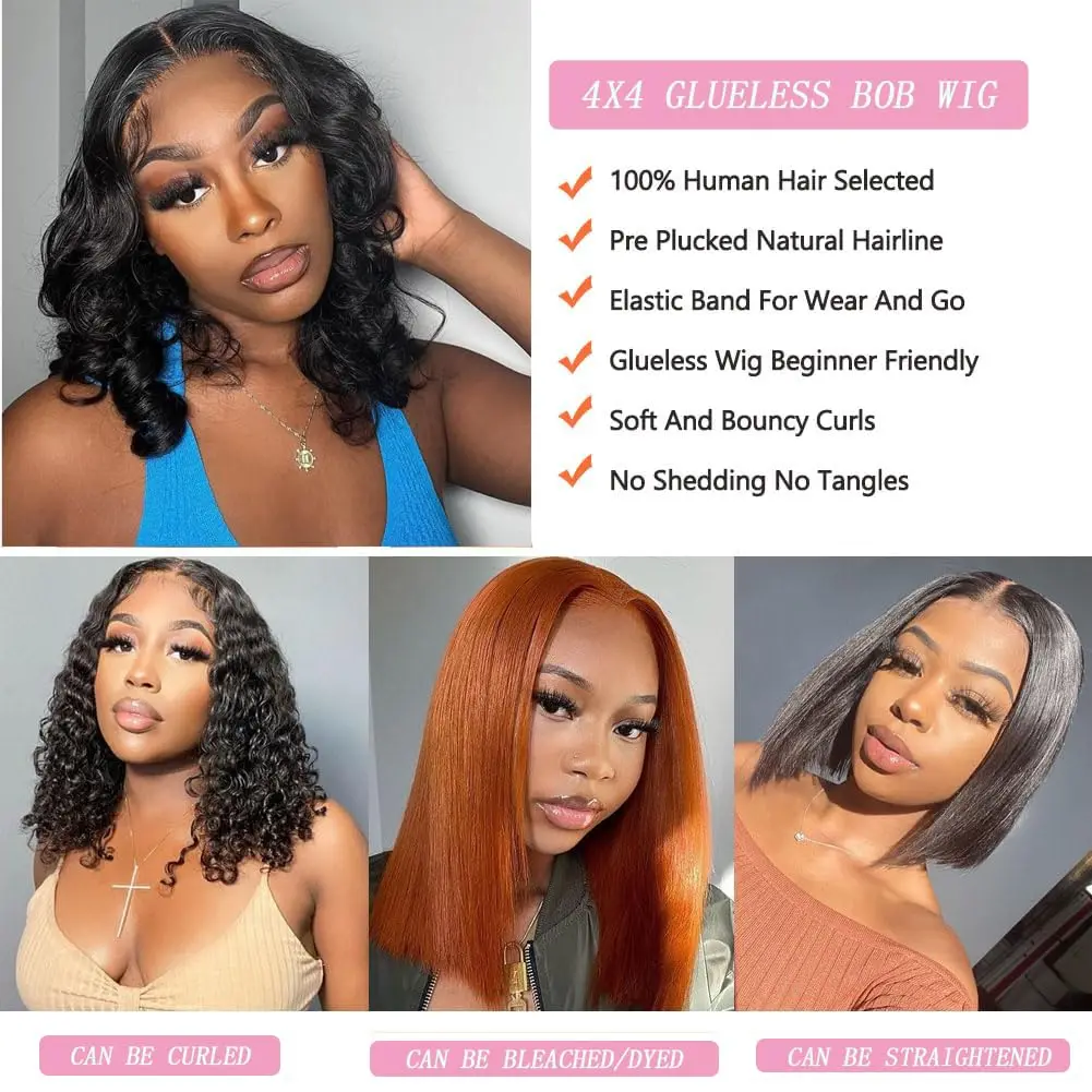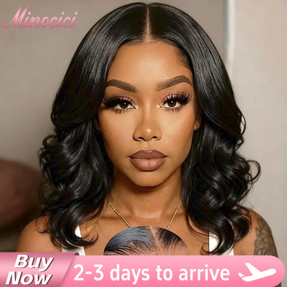 Peluca bob ondulada de cabello humano sin pegamento con encaje HD 5×5