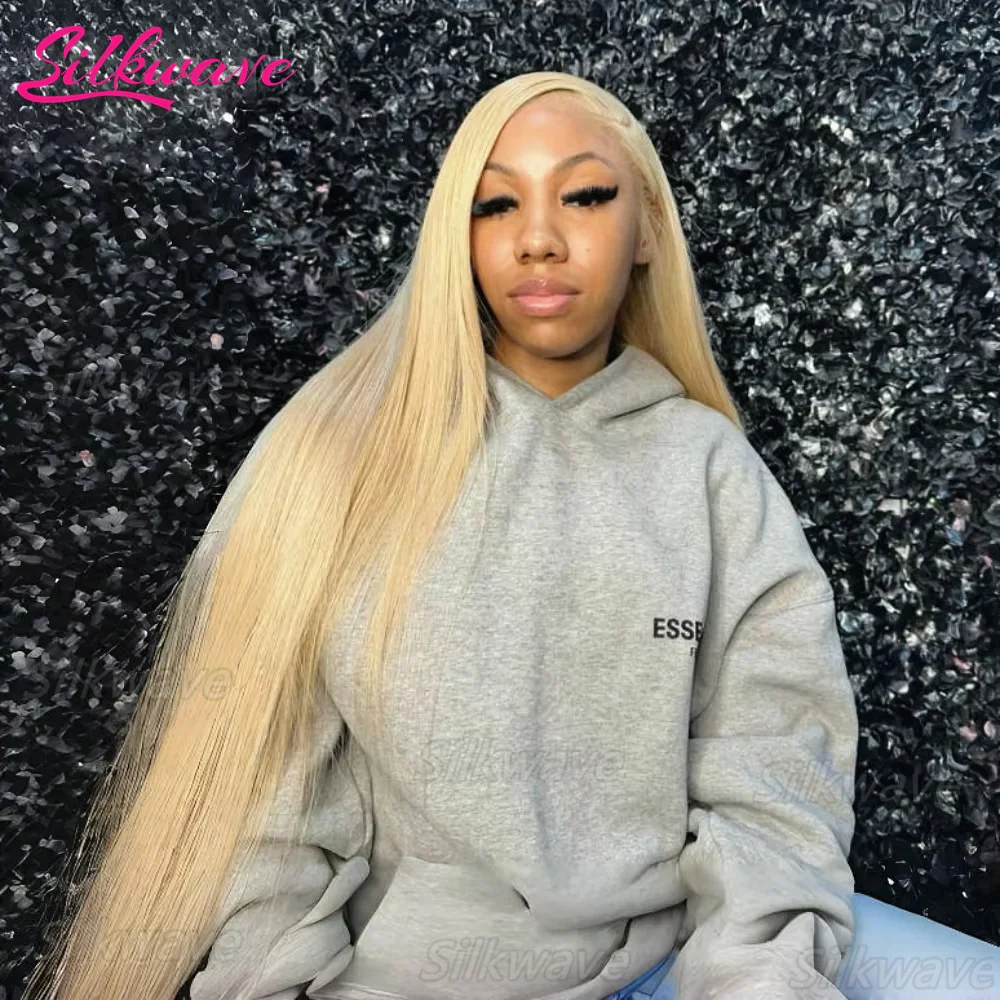 Peluca rubia lisa de cabello humano brasileño, disponible en 30 y 38 pulgadas. Incluye encaje frontal HD 13×4 o 13×6, color 613 prearrancado y densidad 200%, ofreciendo un look natural, voluminoso y de alta calidad para mujeres que buscan elegancia y realismo.