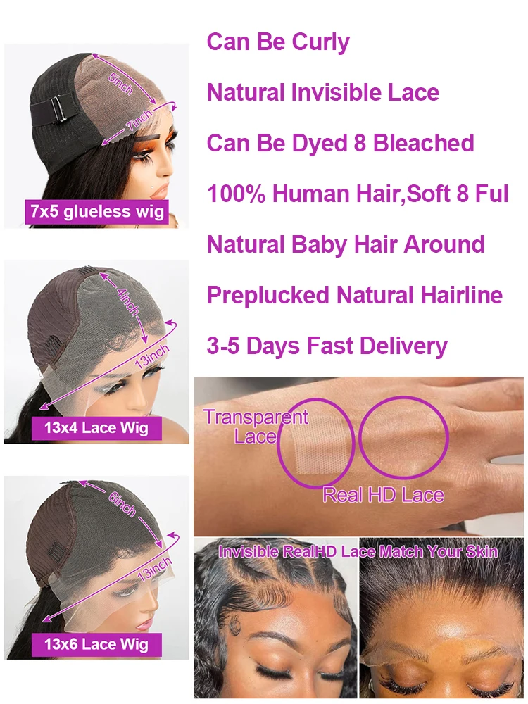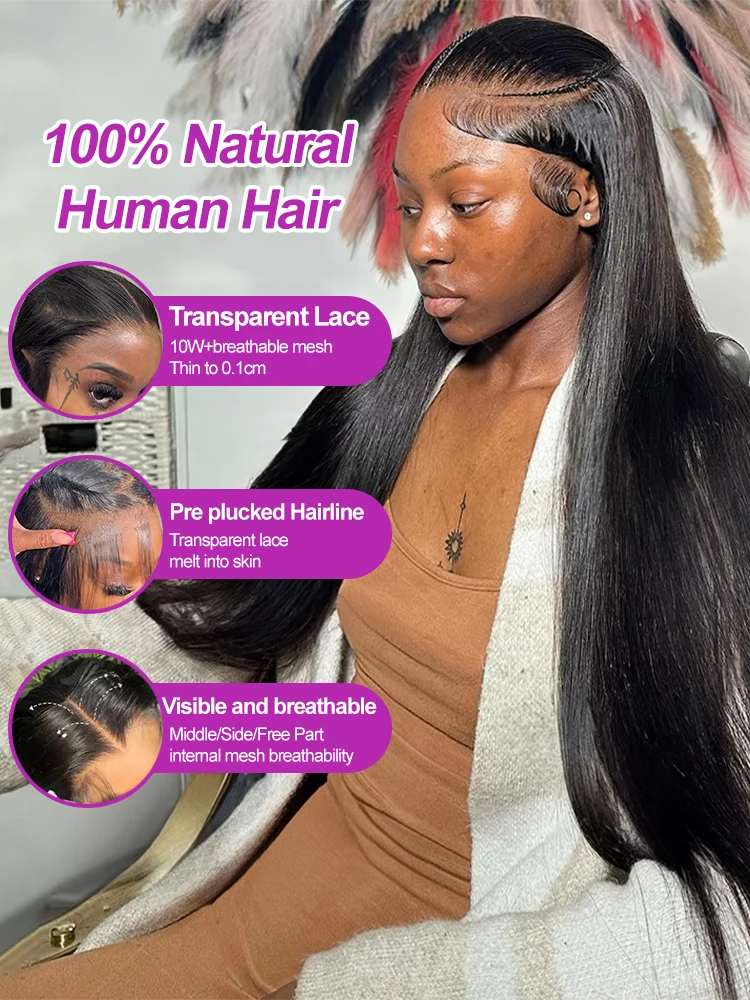 Peluca para mujer de cabello humano brasileño 100% Remy, lisa y en color hueso. Encaje frontal HD 13×6 (opción 13×4), densidad 250% y largos de 30 a 40 pulgadas para un acabado natural, abundante y elegante.