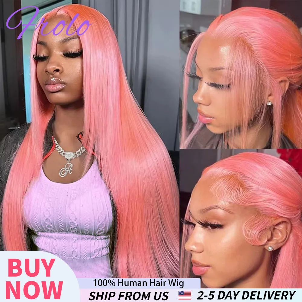 Peluca lisa rosa de cabello humano brasileño con encaje HD frontal 13×6