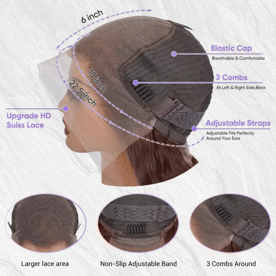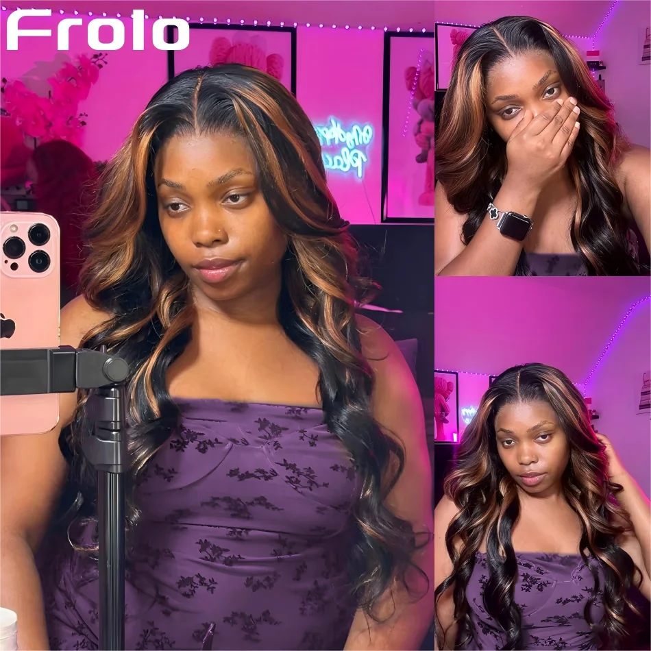Peluca para mujer de cabello humano brasileño 100% con ondas suaves estilo body wave en color P1B/30 resaltado. Encaje frontal HD 13×6, malla frontal natural y largos disponibles de 30 a 38 pulgadas para un look elegante y abundante.