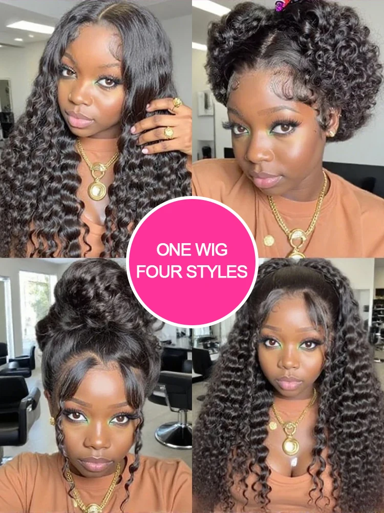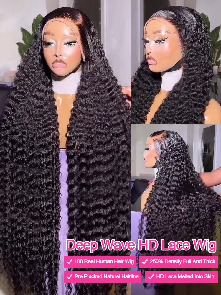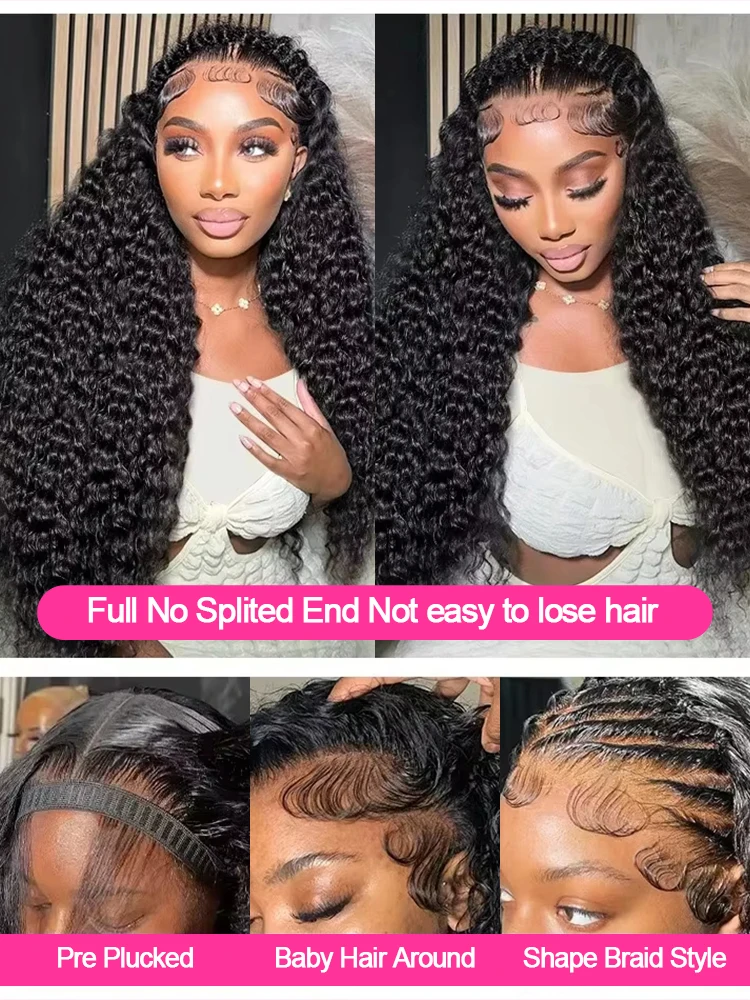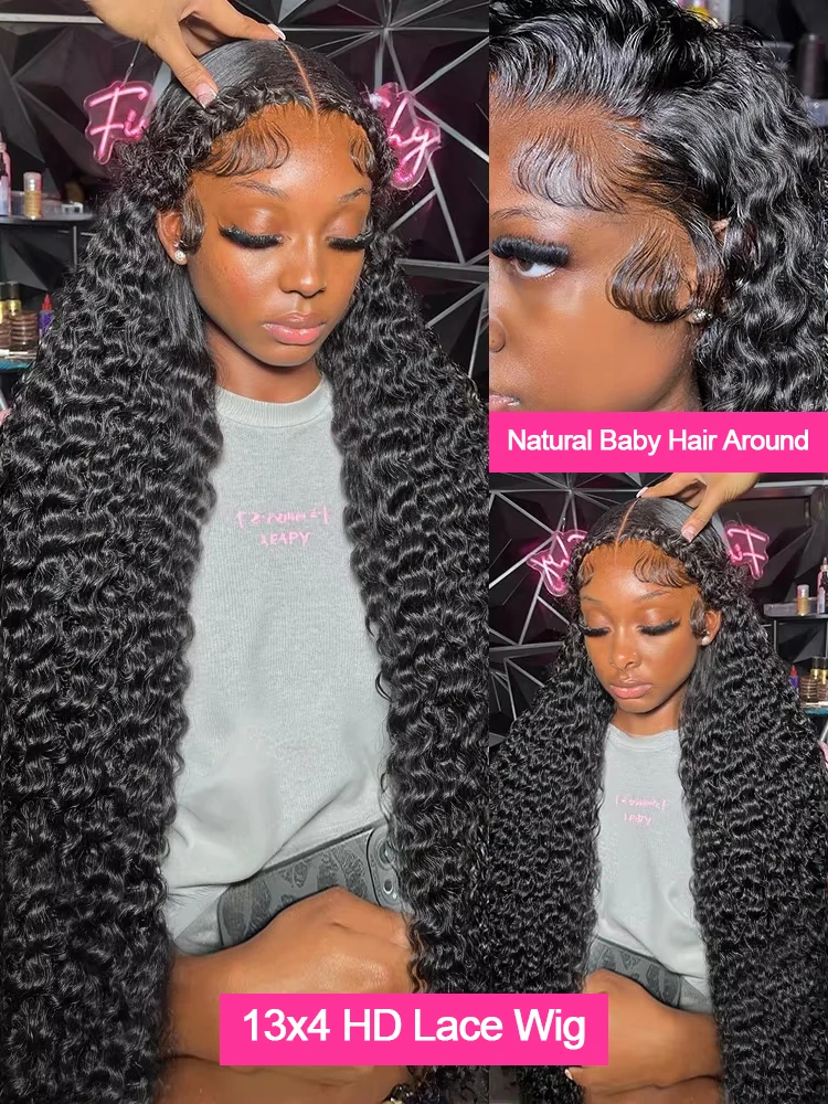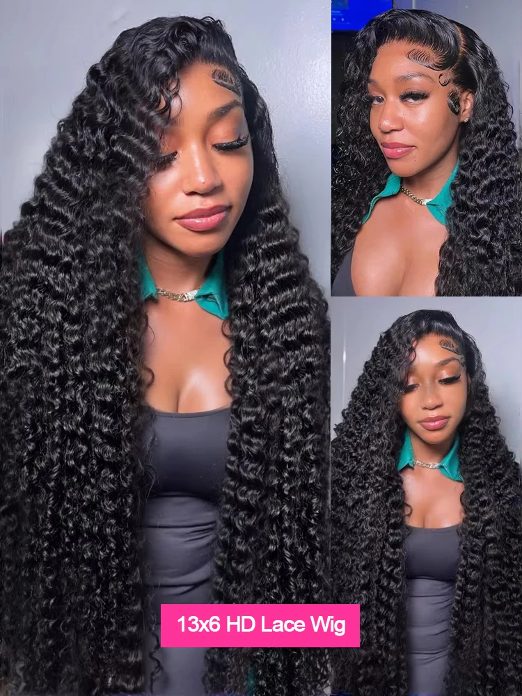 Peluca rizada de onda profunda de cabello humano con encaje HD frontal 13×6 y 360