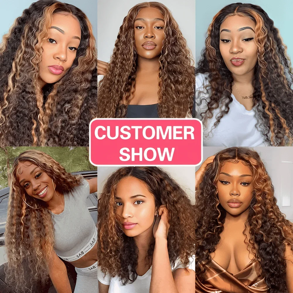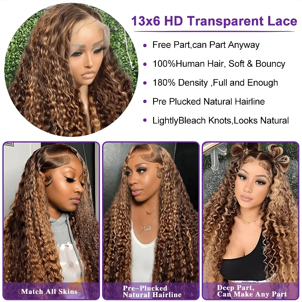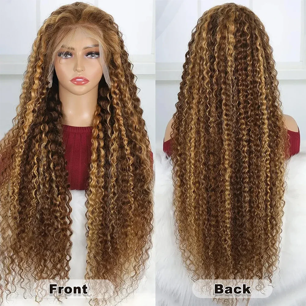 Peluca rizada profunda rubio miel de cabello humano con encaje HD frontal